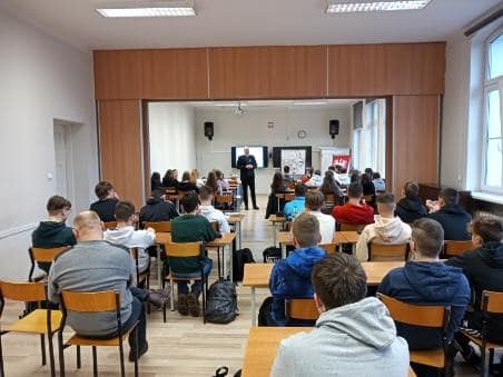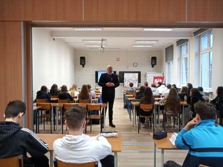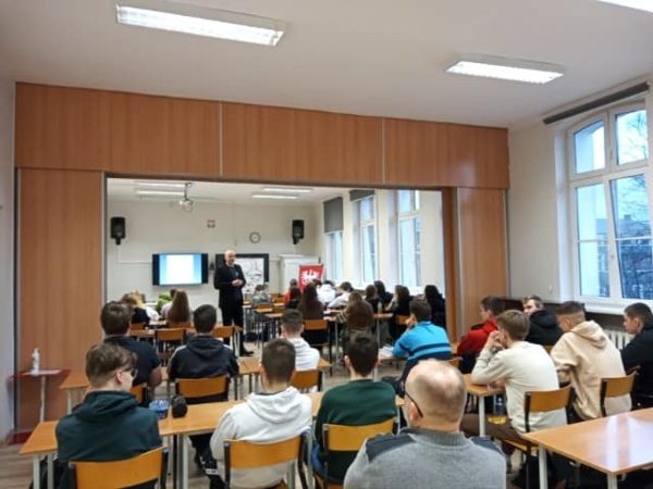 Gościnny wykład Profesora Arkadiusza Słabiga w Zespole Szkół im. Powstańców Wielkopolskich w Krzyżu Wielkopolskim