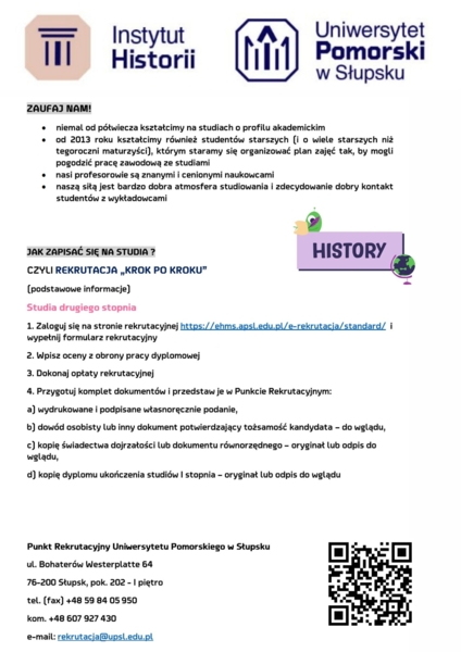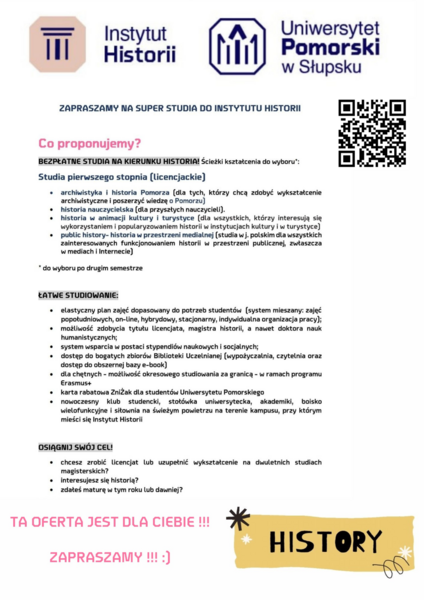 6 lipca 2023, 12:24Oferta kształcenia Instytutu Historii 2023/2024Zapraszamy na super studia do instytutu historii! SPS: SDS: ULOTKA SDS 2023-2024 pdf.pdf ULOTKA SPS 2023-2024 pdf.pdf