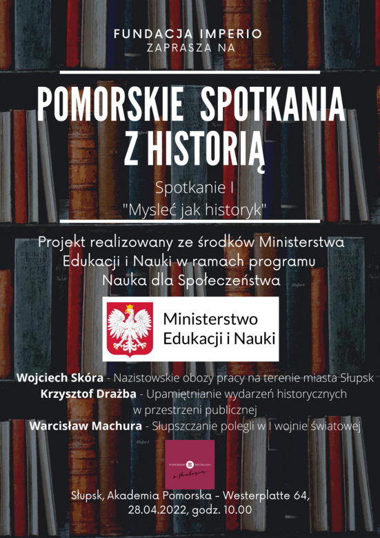 Już w najbliższy czwartek, tj. 28 kwietnia 2022 roku zapraszamy na I spotkanie z cyklu Pomorskie Spotkania z Historią.