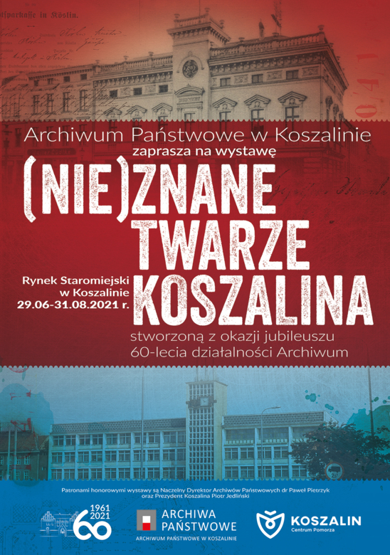 W tym roku koszalińscy archiwiści świętują podwójnie, gdyż w 2021 r. przypada jubileusz 60- lecia działalności Archiwum Państwowego w Koszalinie. W związku z tym zapraszamy wszystkich miłośników Koszalina do przestrzeni miejskiej – 29 czerwca 2021 r. przy Rynku Staromiejskim stanie jubileuszowa wystawa pt. „(Nie)znane twarze Koszalina”.